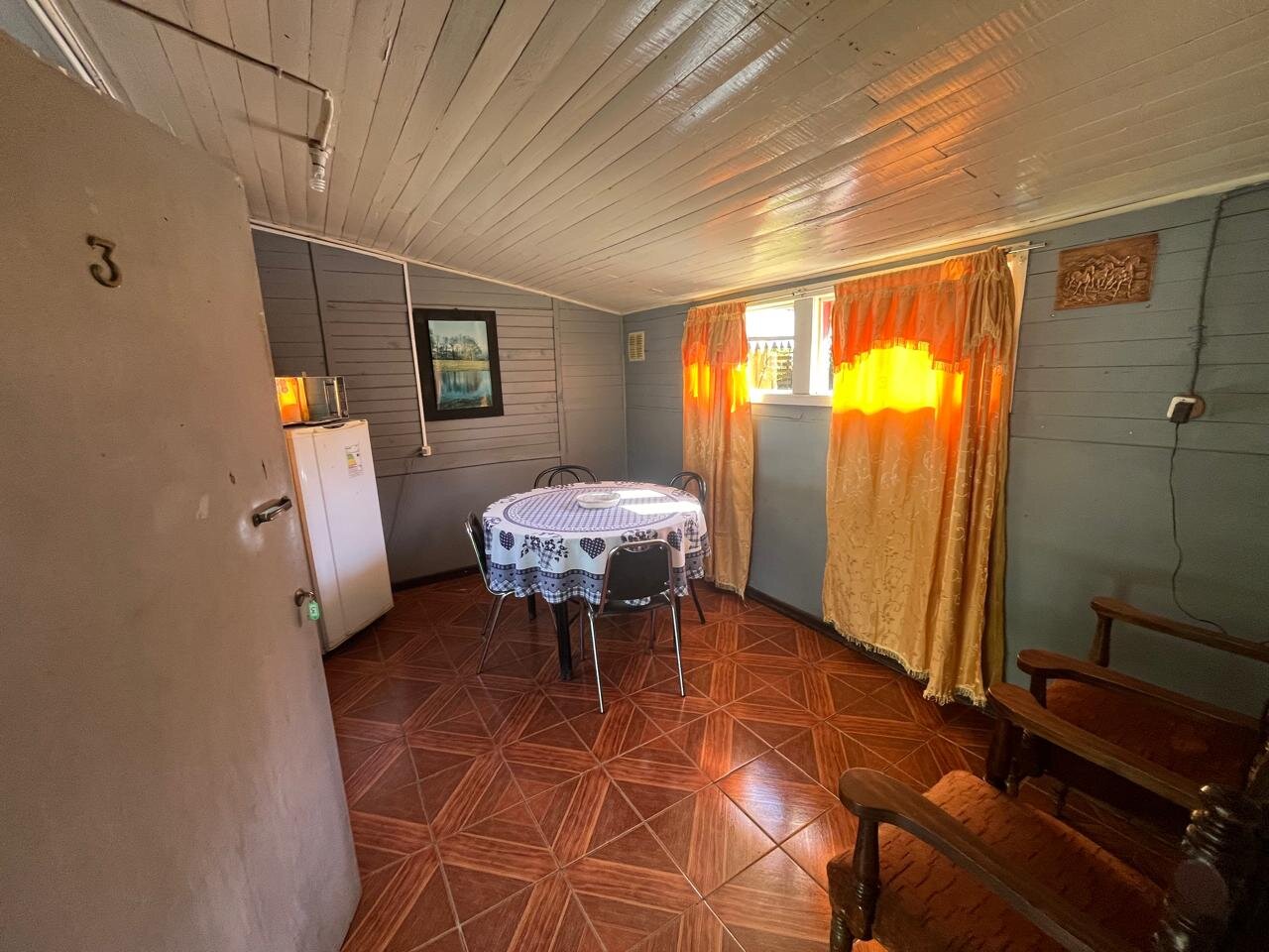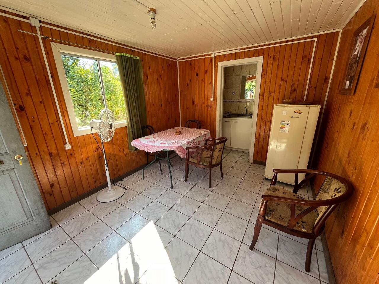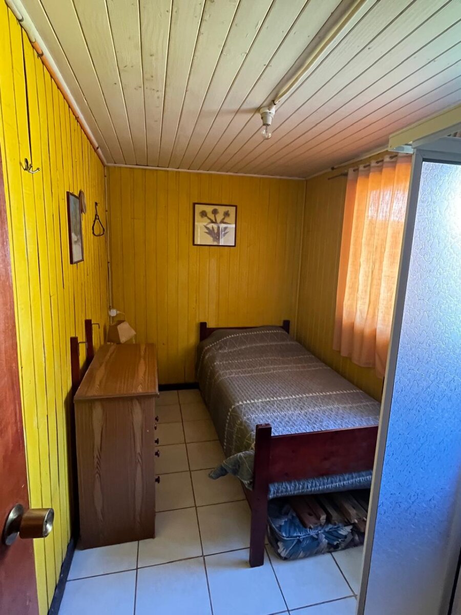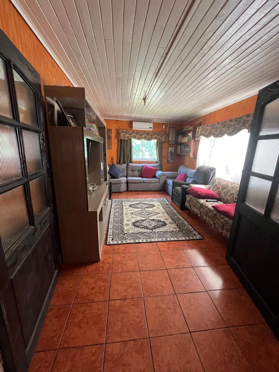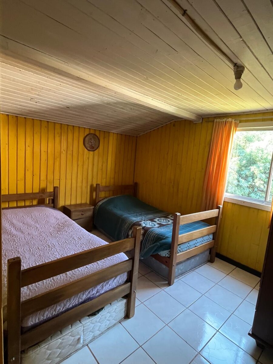 4. **Casa cabaña (64m2):** Con tres dormitorios amoblados, dos baños, cocina equipada y living comedor.